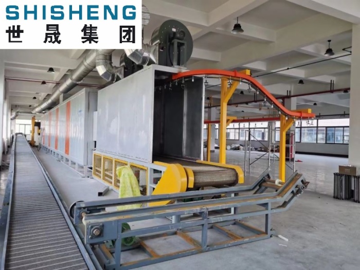 因工件尺寸比較大,傳統標準件涂裝生產線已不能滿足客戶需求,我司特研發設計制造出大型零部件浸噴一體生產線,采用一條網帶懸掛固化爐、一臺全自動機頭和噴房,使用范圍廣,適合各大型金屬件。操作流程:1、上件:浸涂工件自動上料,噴涂工件采用人工上件;2、涂覆:浸涂與噴涂同時運行,噴涂采用自動噴涂,配有人工補漆房;3、流平:工件在網帶/懸掛鏈上自然流平;4、高溫固化:工件通過320攝氏度固化,時間30~40分鐘;5、冷卻:風冷;6、下件:自動/人工下件。